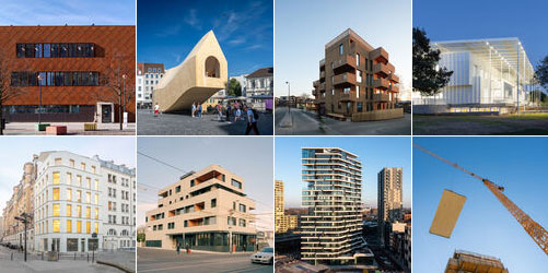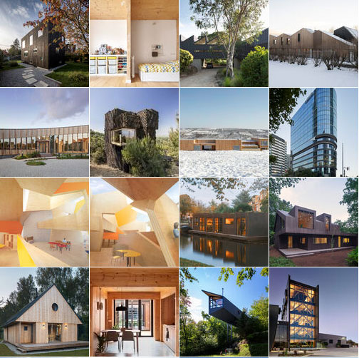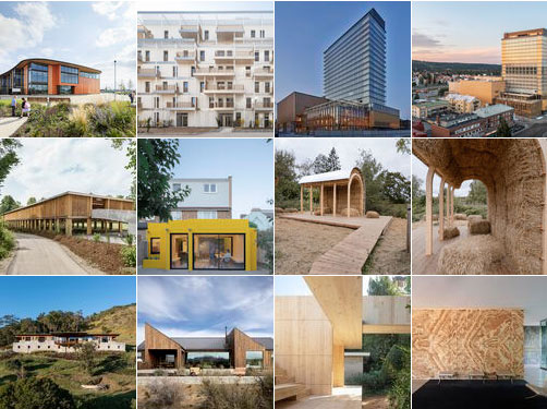 As possibilidades de pré-fabricação, por sua vez, tornam soluções arquitetônicas ainda mais complexas mais viáveis, como o projeto do CRAB Studio de um Centro de Inovação na Universidade de Artes de Bournemouth, Reino Unido, que usa o CLT para formar seções irregulares de parede, piso e telhado, e combina de forma lúdica o acabamento de madeira colorida ou natural com vazios de luz. Alternativamente, a Cabine de Quarentena Voxel em Barcelona, Espanha, pegou o material residual gerado durante o processo de produção CLT e o transformou "em uma fachada que mostra a complexidade orgânica da árvore", como explicam os arquitetos, do Valledaura Labs.