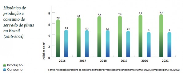Produção e Consumo de Madeira Serrada de Pinus - milhões m³